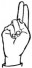 На ћирилици написано КОСТАДИН РУЖИЋ састоји се из 13 слова [?]. Исписано ћириличном једноручном азбуком за глувонеме: